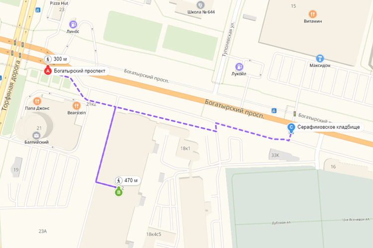Остановка: «Серафимовское кладбище» или «Гаккелевская (Богатырский проспект)»