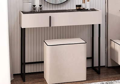 Туалетный стол с выдвижным ящиком Милагро Кашемир серый, Камень Пьетра, Черный ЛДСП