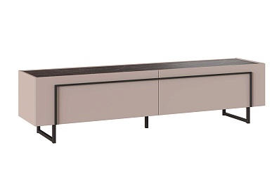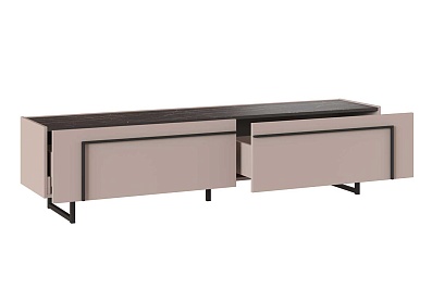 Тумба Милагро под телевизор с выдвижными ящиками Кашемир серый, Камень Пьетра, Черный