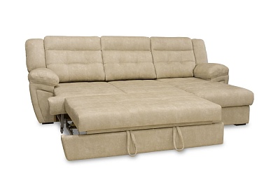 Диван-кровать Глория-3 с оттоманкой бежевый Бежевый (Belgium 7001), Искусственная замша