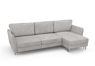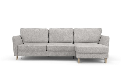Диван АННИКА NEW 3-х местный с оттоманкой и светлыми опорами Серо-бежевый (Woolly 910), Рогожка