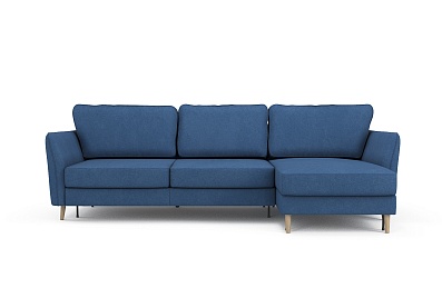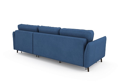 Диван АННИКА NEW 3-х местный с оттоманкой и темными опорами Темно-синий (Happy 784), Велюр