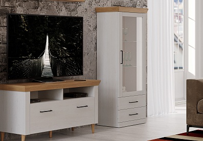 Навесной шкаф Анри (левый) АН-411.04 Д1 (Н), Швейцарский вяз Швейцарский вяз, Белый