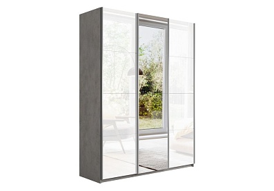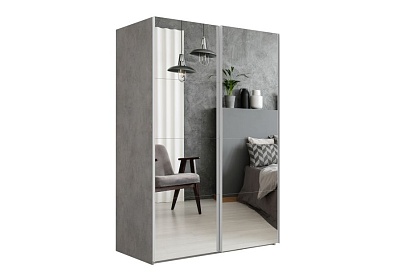 Шкаф-купе Lux с зеркальными дверцами 160x230 Бетон, С полками