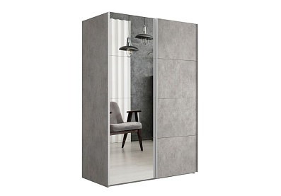 Шкаф-купе Lux с одним зеркалом 160x230 Бетон, С полками