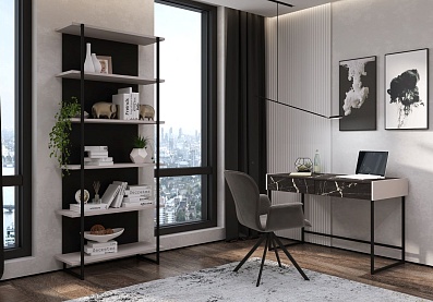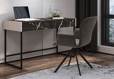 Cтол Миллс письменный с выдвижными ящиками Кашемир серый, Камень Пьетра, Черный графит ЛДСП