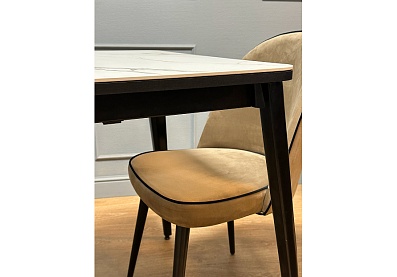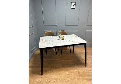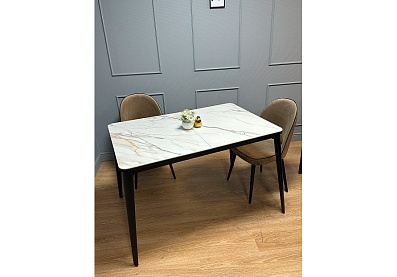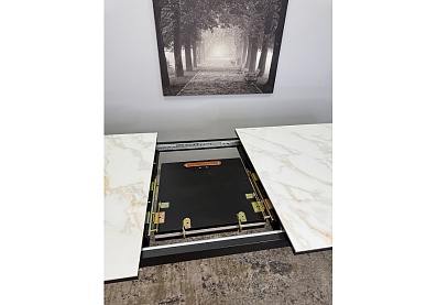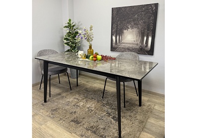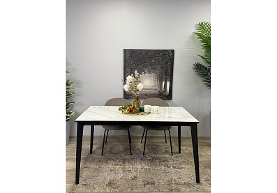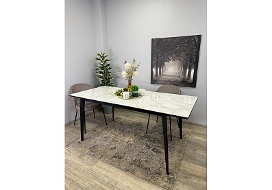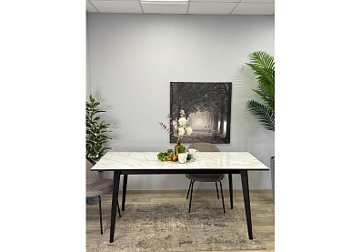 Стол обеденный Легро раздвижной черный/керамика мрамор белый Керамика
