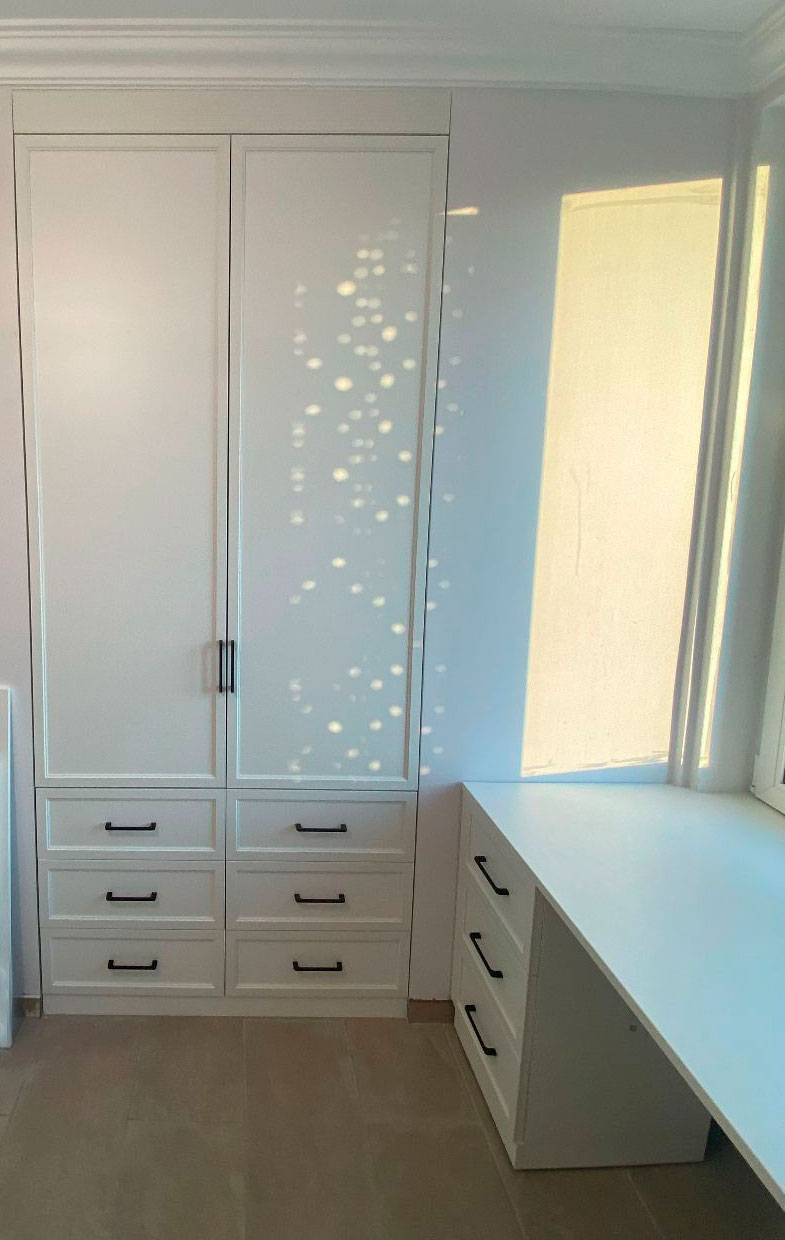 На основе готового дизайн-проекта, предоставленного дизайнером, необходимо было разработать мебель, выбрать материалы и текстуры. Нашей задачей было тщательно продумать и реализовать эскизы, чтобы в дальнейшем обеспечить семью удобной и качественной мебелью. В рамках проекта создавались шкафы и тумбы для спальни, детской, гостиной и прихожей.
