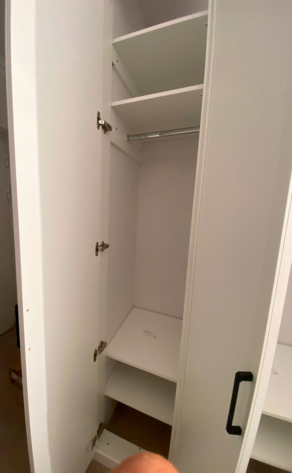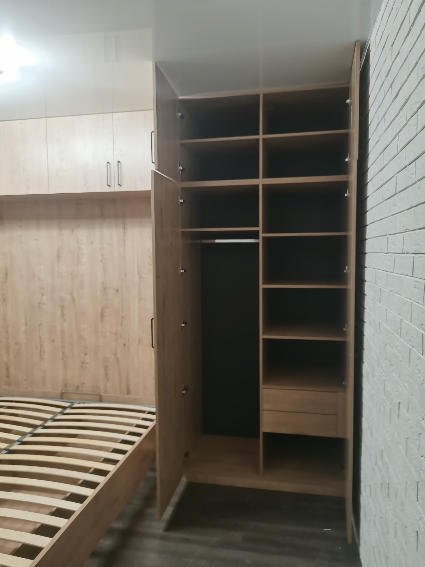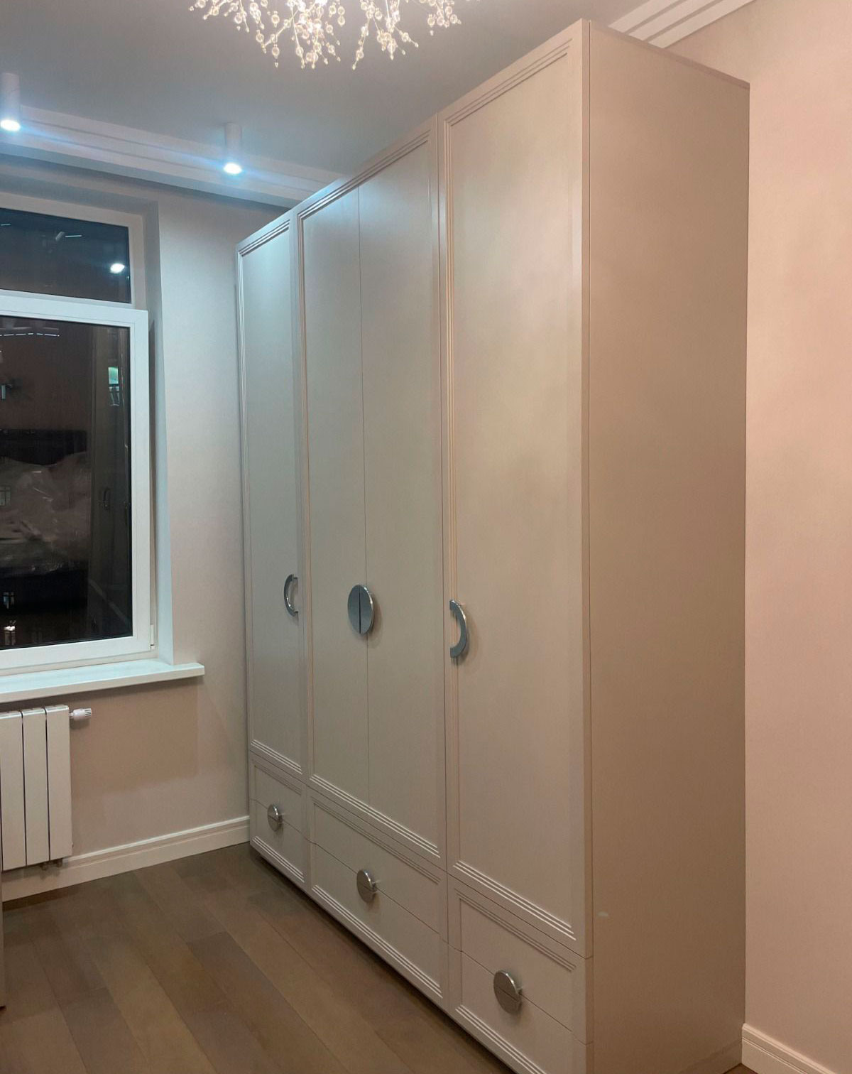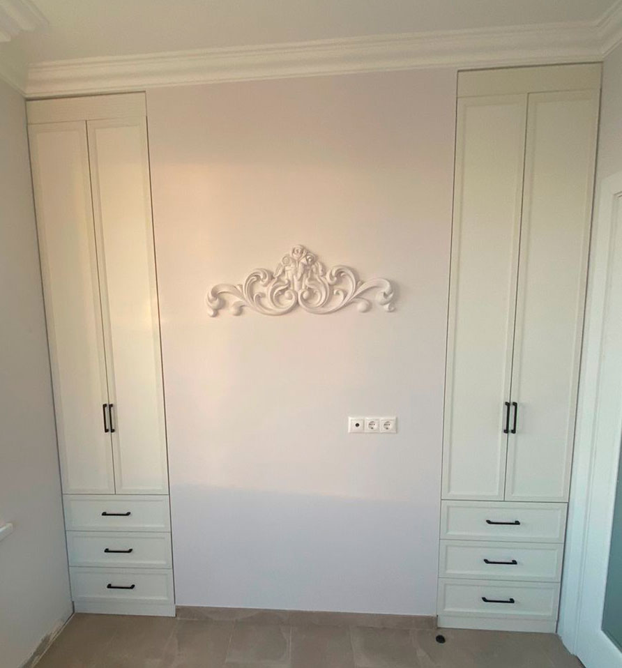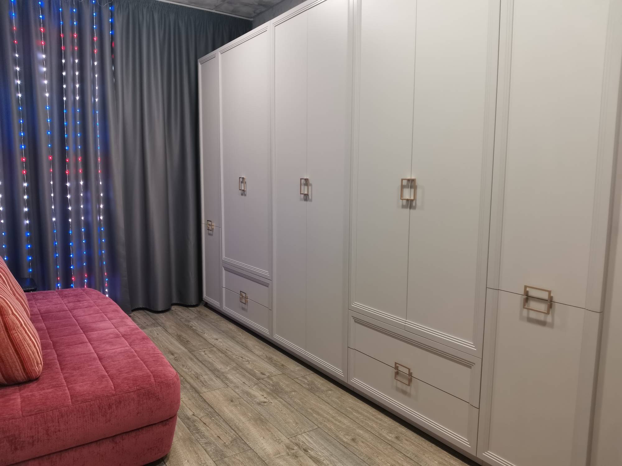 Вместе с клиентами мы разработали схемы будущей мебели, определили расположение ящиков, полок и крючков. Также подбирали материалы, цвета и фурнитуру, согласовывали детали, чтобы мебель гармонично вписалась в интерьер. Проводили замеры и проделали огромную работу. Производство осуществлялось на нашей фабрике «Ангстрем». Все было изготовлено в срок, доставлено и собрано до Нового года, что стало приятным сюрпризом для клиентов.