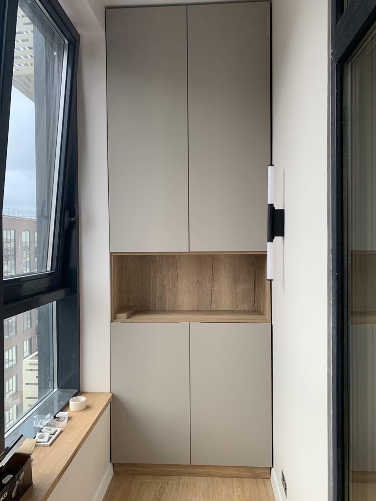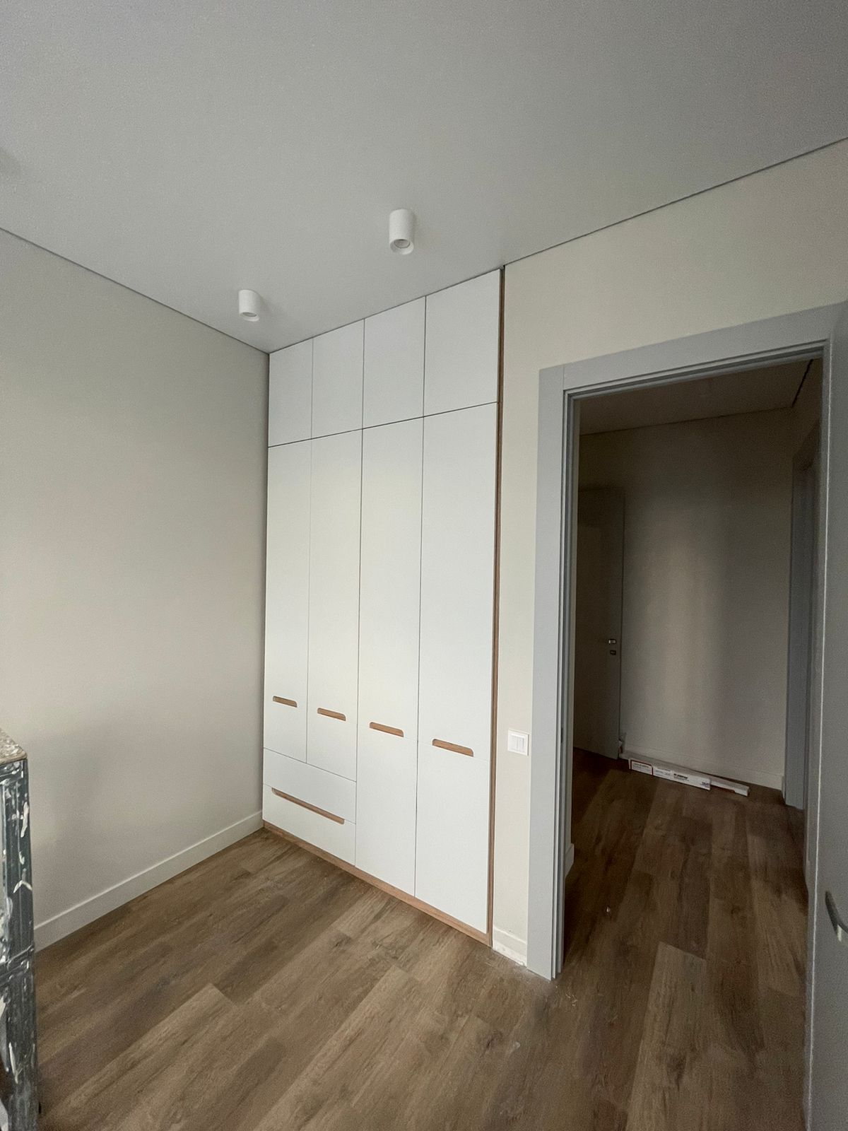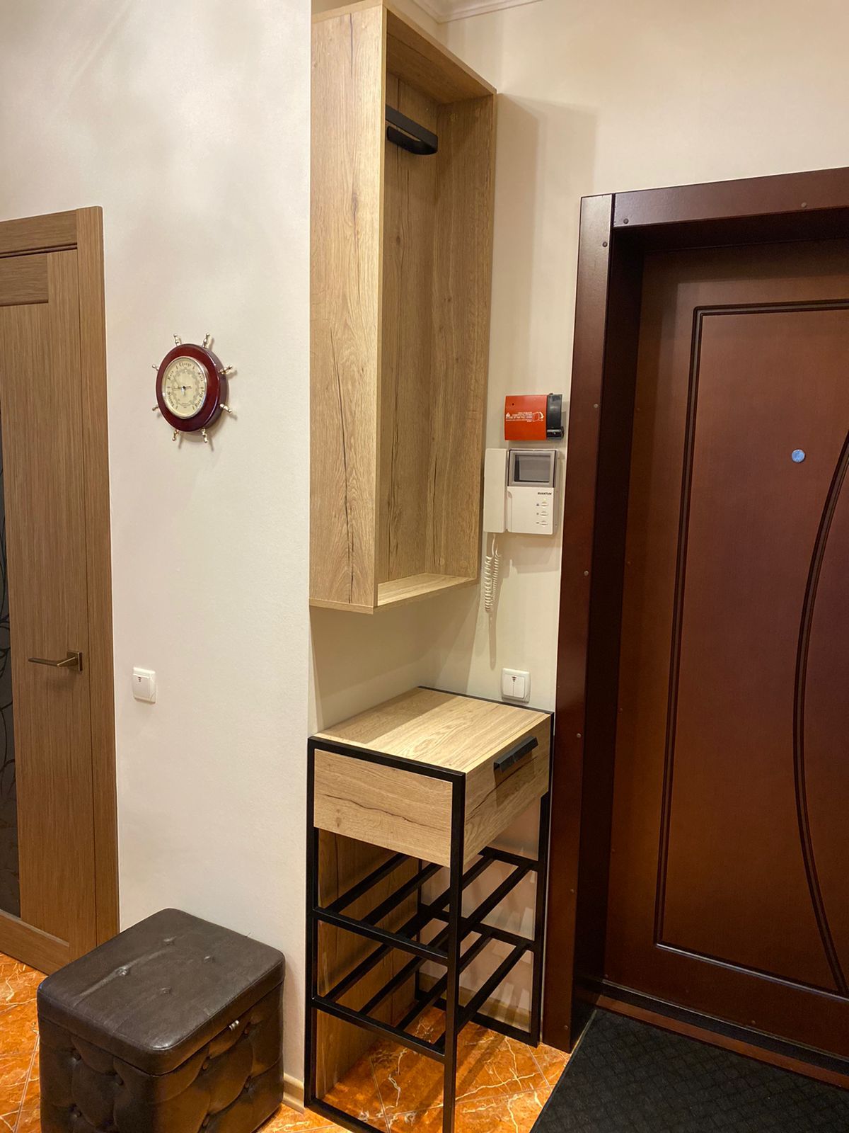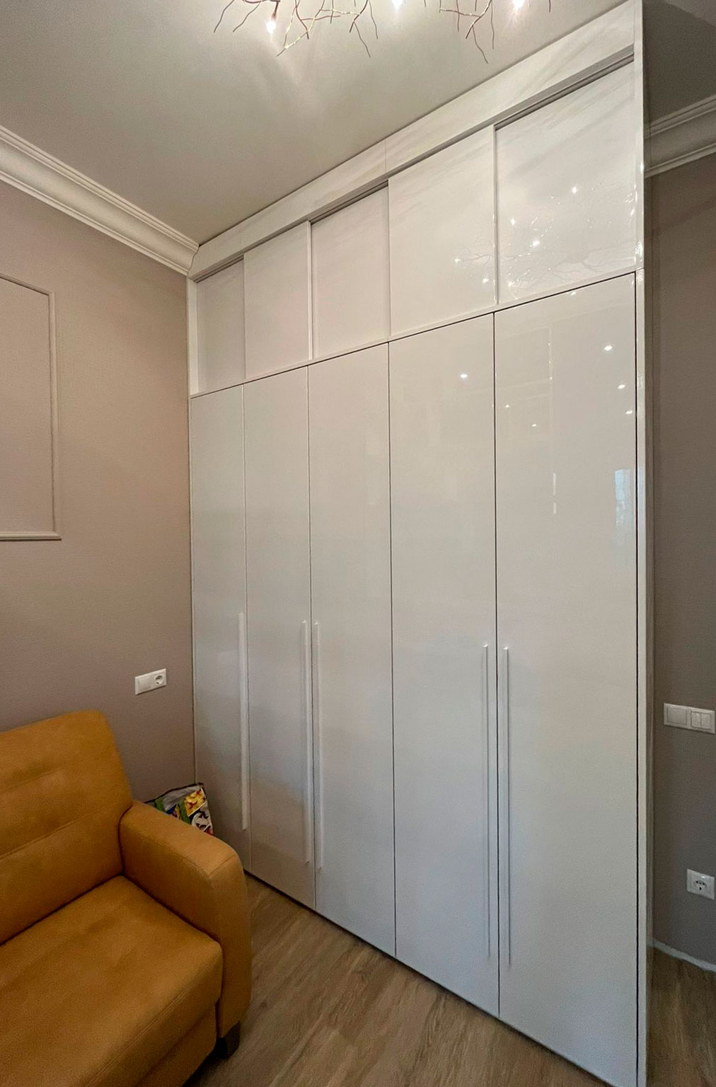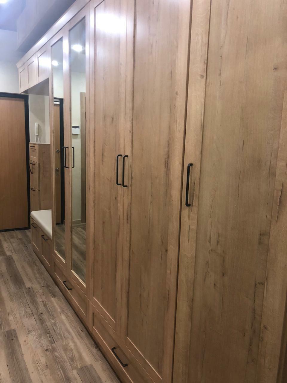 Система хранения: Основная система хранения расположена в длинном коридоре, где установлен огромный шкаф-гардероб во всю длину стены. В гардеробе предусмотрены удобные выдвижные ящики для обуви (с push-to-open механизмом).
