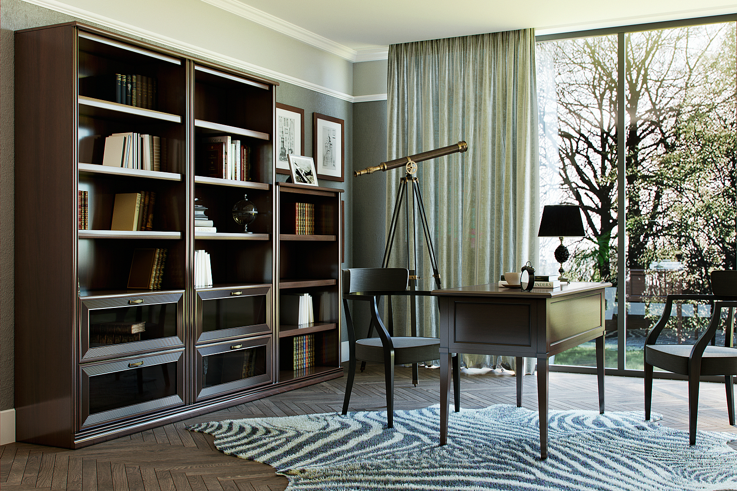 Строгие филенки, высокие тонкие ножки, выступающие края столешницы подчеркивают классический дизайн. Традиционное оформление соблюдено во всем, начиная от теплого древесного цвета «старый клен» и заканчивая четкой геометрией и симметричностью изделия. Латунная фурнитура оформлена в оттенке «античная бронза». «Адажио» идеально впишется в обстановку в стиле классика, модерн, ар-деко.