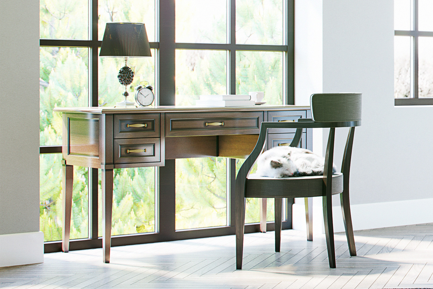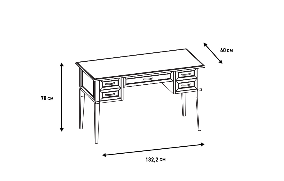 Изящный письменный столик с пятью компактными выдвижными ящиками станет настоящим украшением для рабочего кабинета или комнаты подростка.