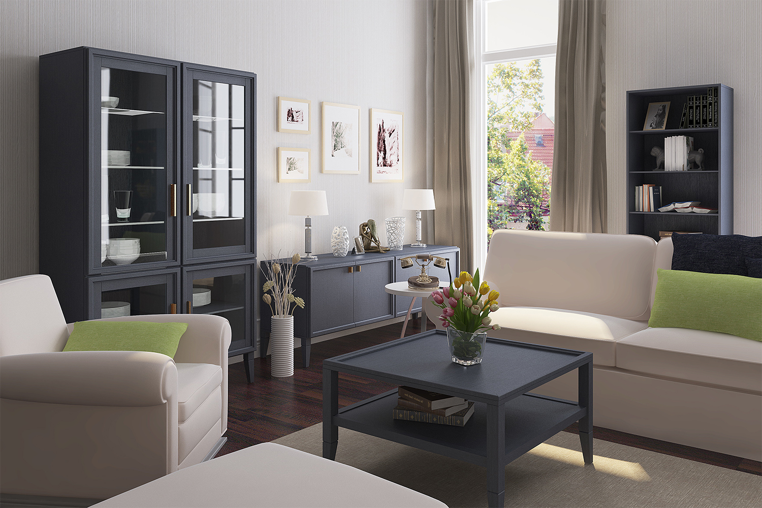 Гостиная выглядит прекрасно. Ничего плохого сказать не могу, вижу одни плюсы. Сервис тоже хороший, заказ и сборка не заняли много времени.