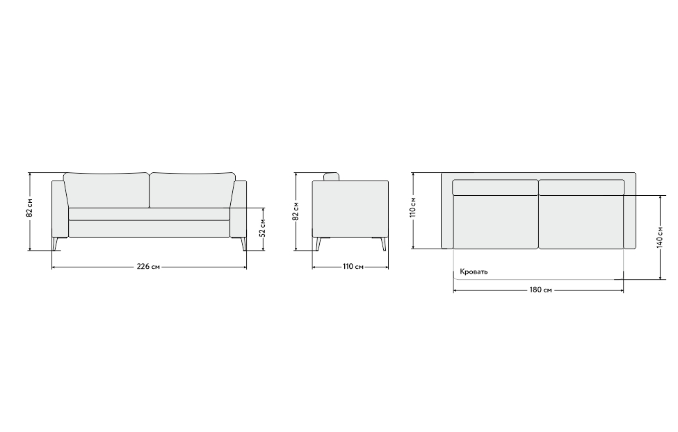 – описание: размер 82x226x110 см, размер спального места 180 х 140 см, стиль современный, цвет серый (dream 14).