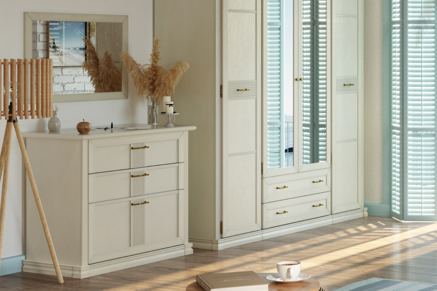 - Спальня в классическом стиле. Кантри — одна из любимых коллекций наших клиентов. Такая мебель подойдет к интерьерам в стилях прованс, кантри или сканди. При создании этой коллекции наш дизайнер вдохновлялась самобытной архитектурой Германии с ее характерной фахверковой системой;