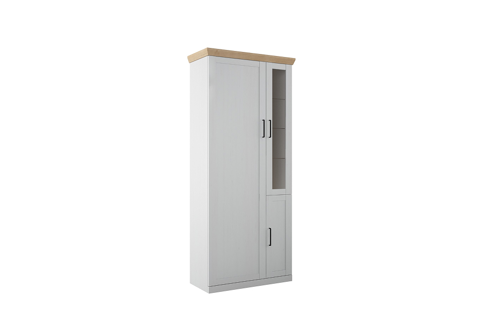 - Шкаф трехдверный, с вертикальной перегородкой, разделяющей шкаф на два отделения (одно - под одежду с выдвижной штангой и полками, другое — с полками ЛДСП и стеклополками);