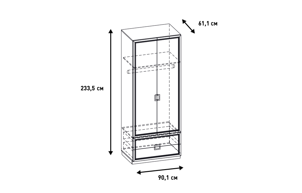 - Шкаф для одежды с полкой, штангой и двумя выдвижными ящиками;