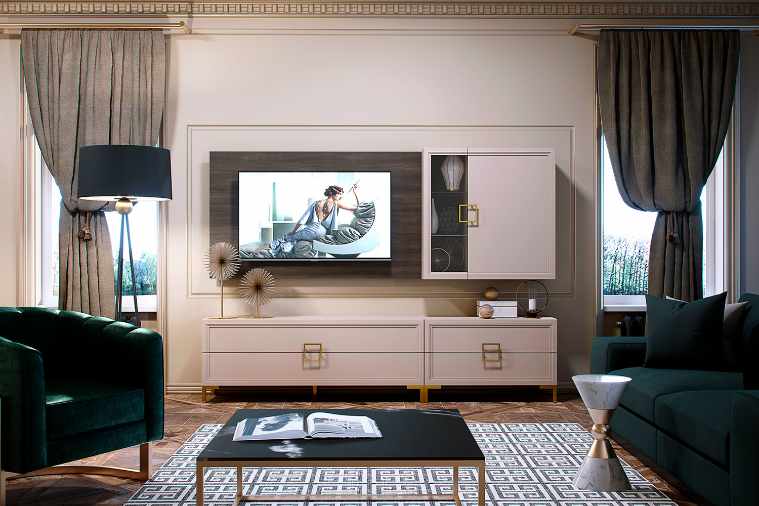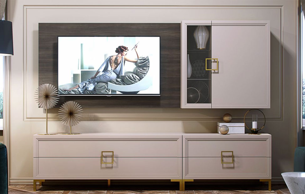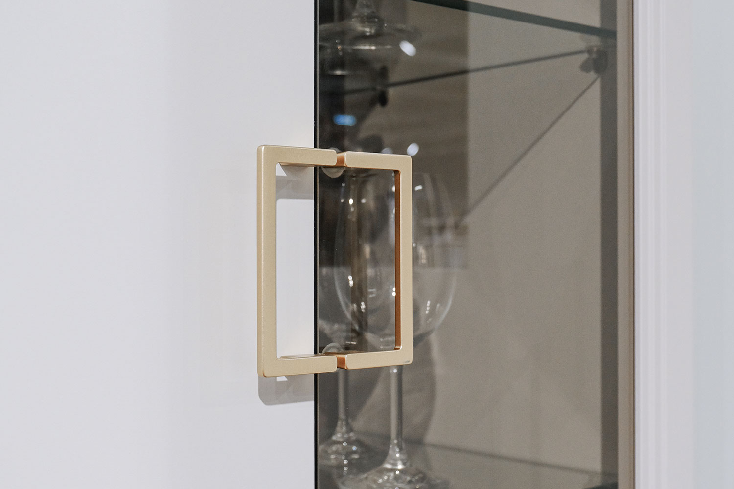 - Внутреннее наполнение: стеклополки 0,6 см за стеклянным фасадом и ЛДСП 1,6 см за глухим фасадом;