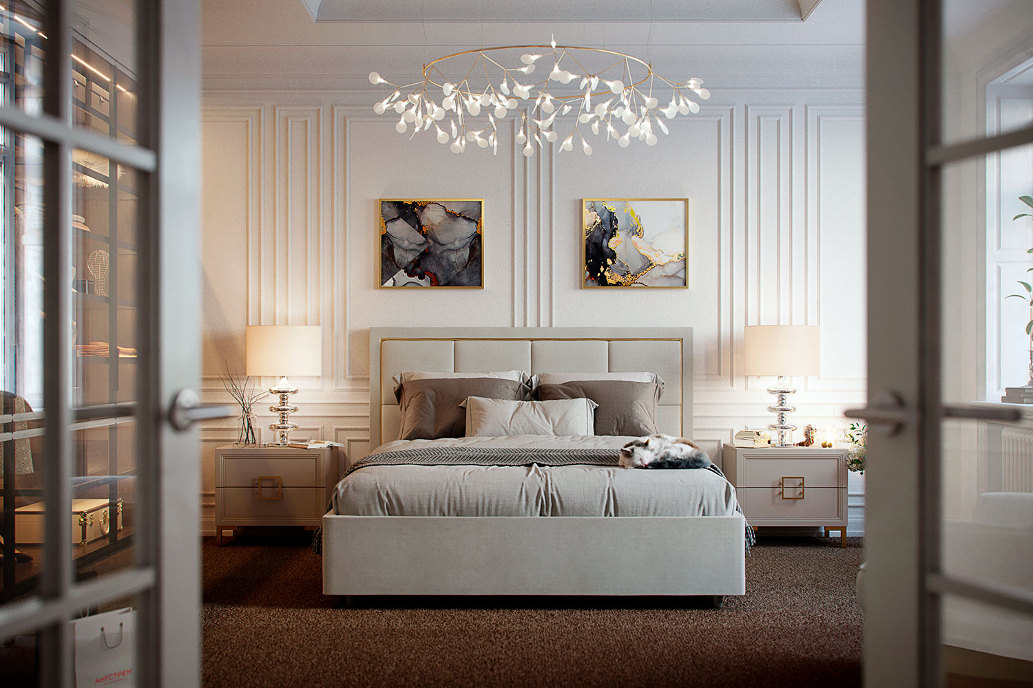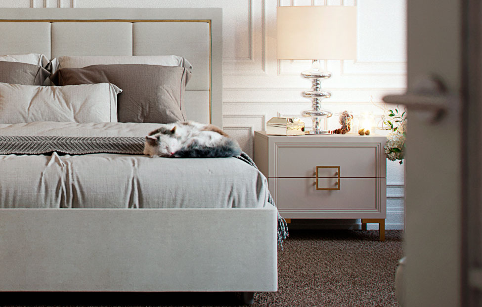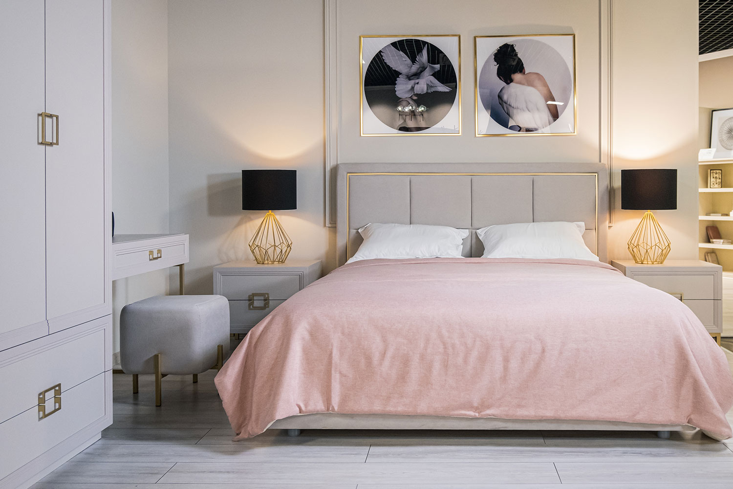 - Спальня Дольче выполнена в стиле эклектики, а также соединяет в себе стиль ар-деко в современном прочтении и минимализм. К строгим формам и безупречной геометрии добавлена гладкая текстура кашемира, позволяющая смягчить декор и подарить коллекции шлейф тонкой роскоши с золотыми вставками;