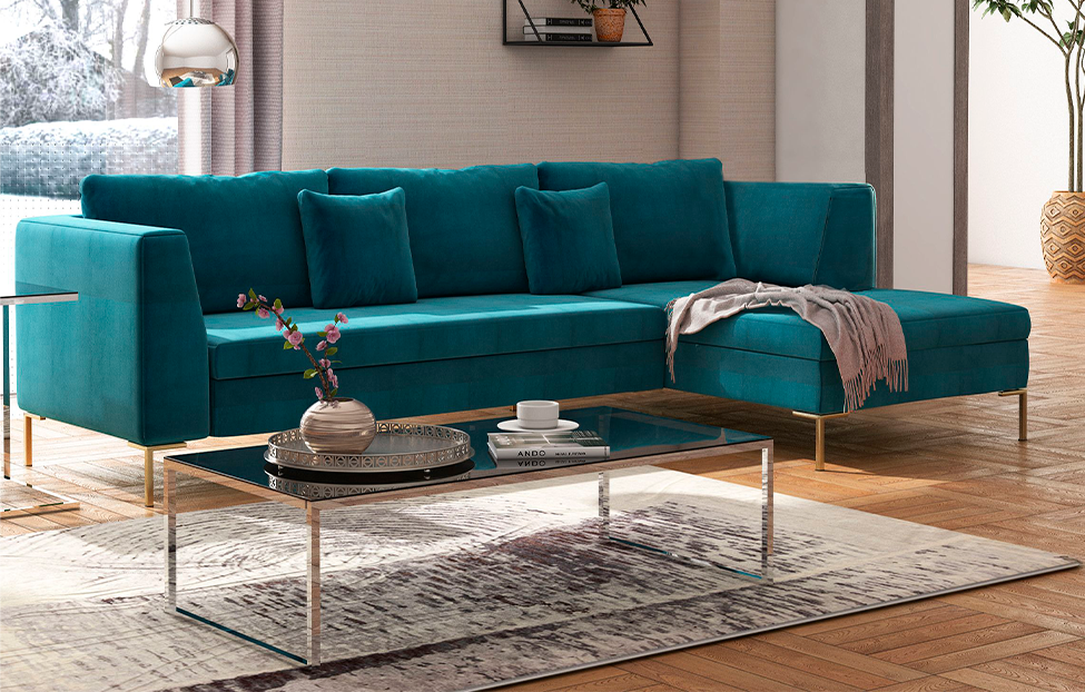– описание: цвет бирюзовый (avelina 9491), размер спального места 140 х 262 см, материал обивки микровелюр, размер 82x308x190 см.