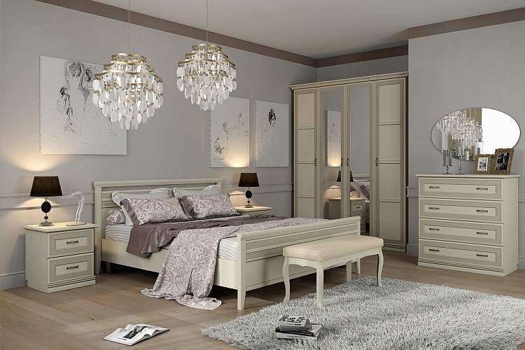 - Спальня Адажио выполнена в стиле традиционной итальянской классики. Строгие прямые карнизы, придающие законченность, красивый резной цоколь, изысканно закрывающий опоры, и нежный цвет «валенсия» делают спальню легкой и воздушной;