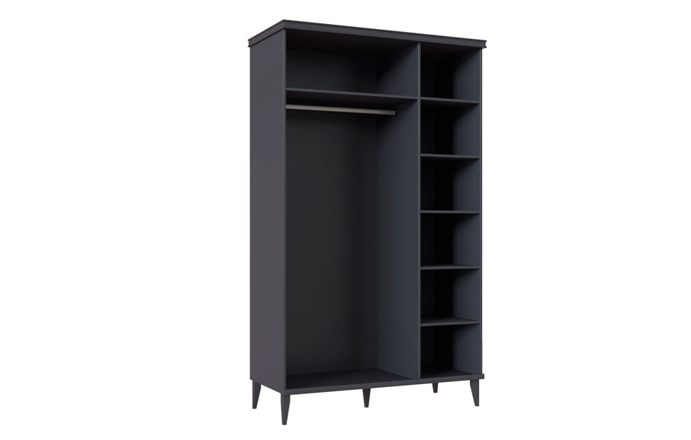 Аккуратные пропорции, симметричность, четкие линии и строгая геометрия делают модель «Орландо» подходящей для создания интерьеров в стиле лофт и минимализм. Трехстворчатый шкаф предназначен для размещения одежды и установки в гостиную, спальню или просторную прихожую. Изделие состоит из двух основных отделений. Первое, более широкое и вместительное, оснащено штангой и двумя полками. Второе, узкое, поделено на шесть одинаковых отсеков.