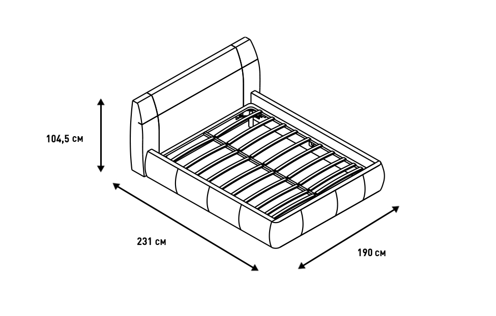 • Корпус состоит из изголовья, двух боковых царг и одной передней царги;