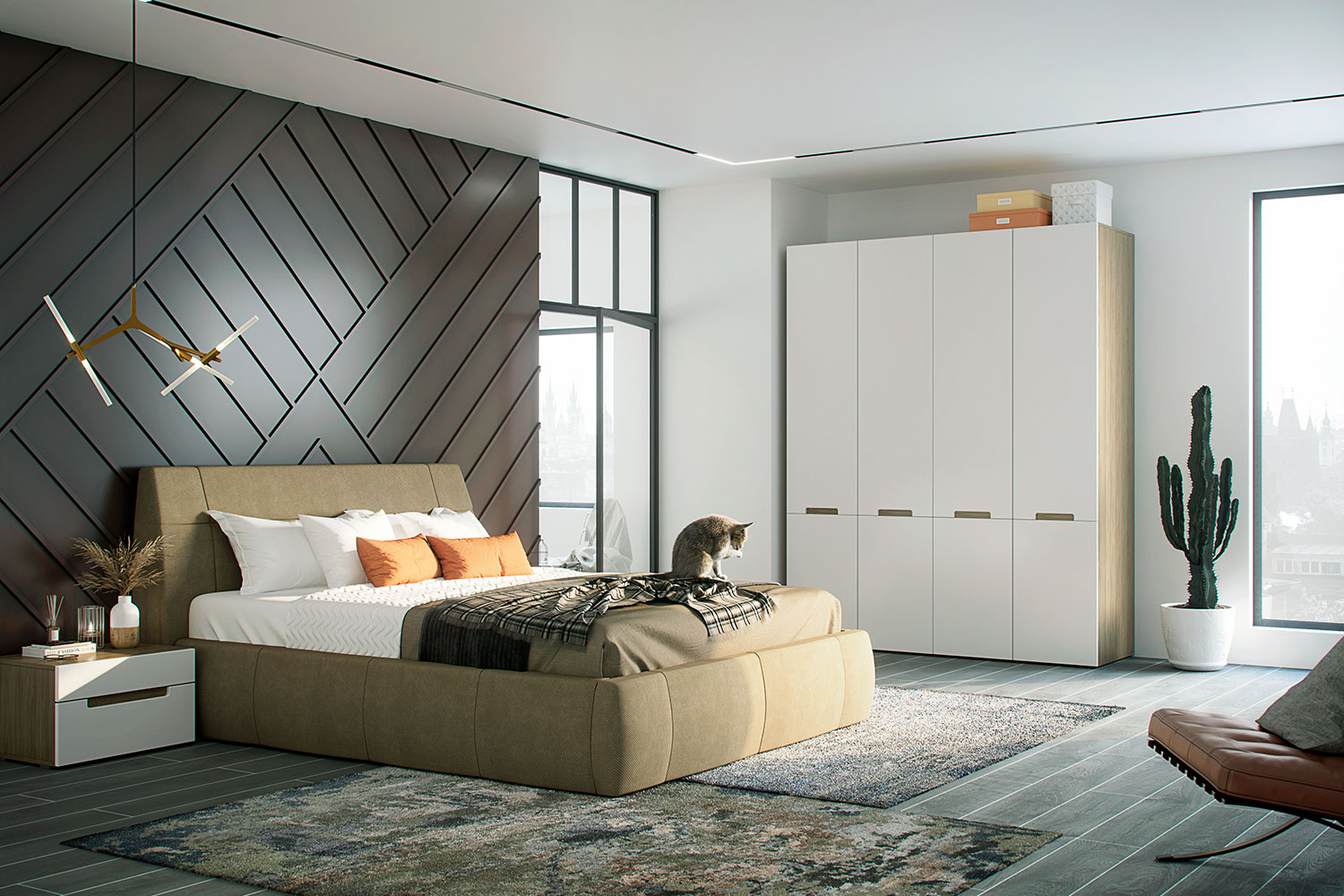 • Изголовье современного дизайна не трансформируется, декорировано утяжными элементами;