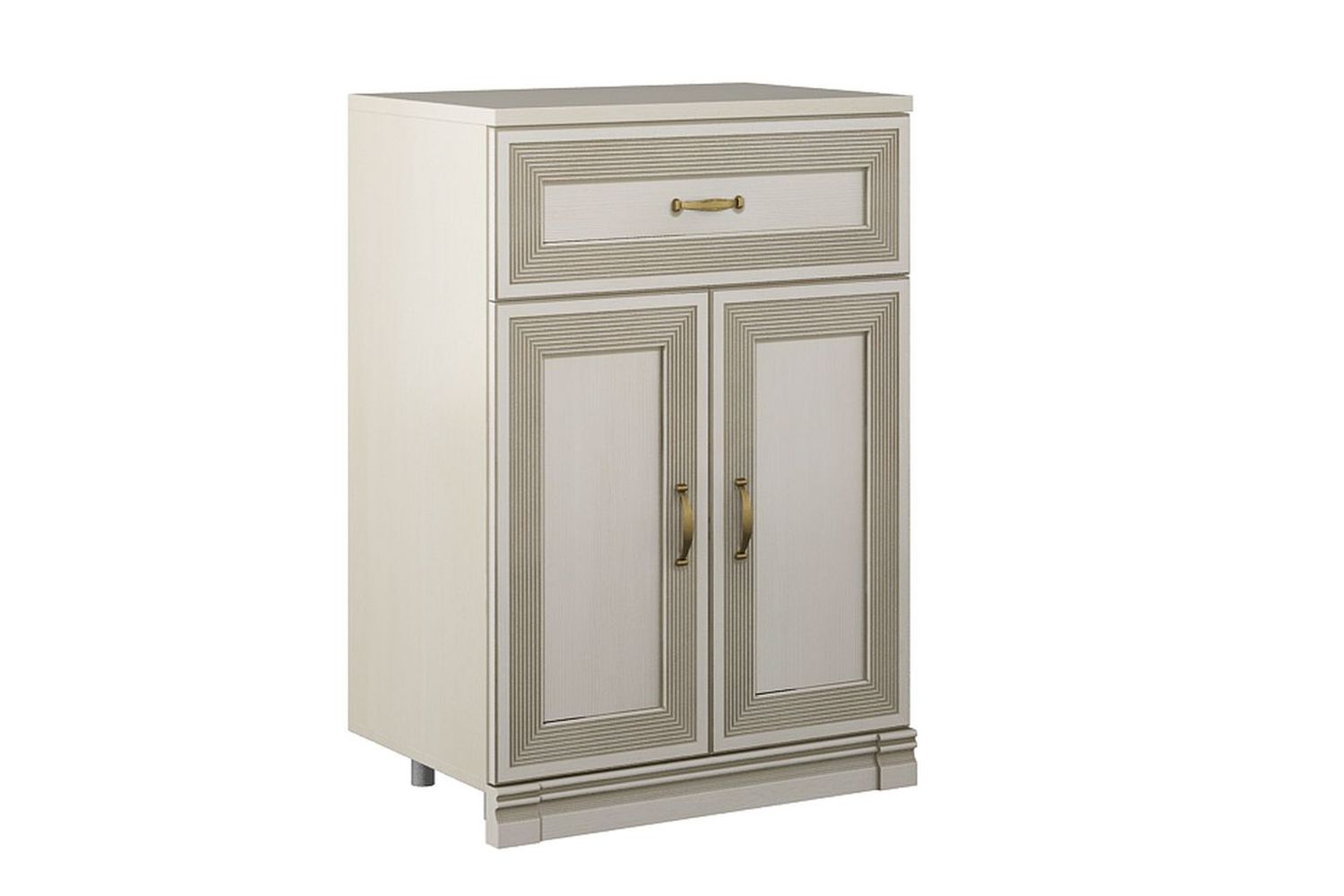 • Тумба с выдвижным ящиком и полкой ЛДСП за распашными фасадами;