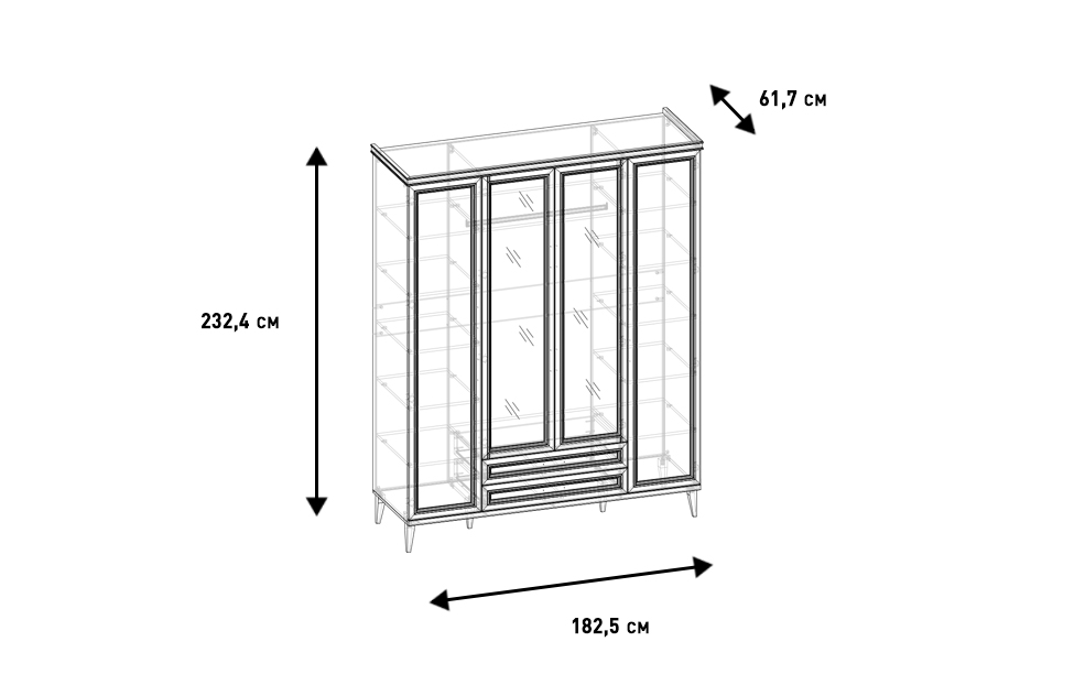 – описание: цвет ярко-серый, назначение для одежды, стиль английский, неоклассика, размер 232.3x182.5x61.7 см.