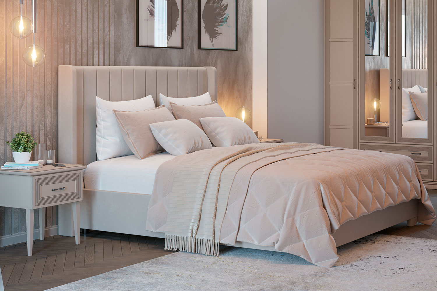 - Изголовье декорировано вертикальными линейными утяжками. Имеет эргономичную форму и размер;