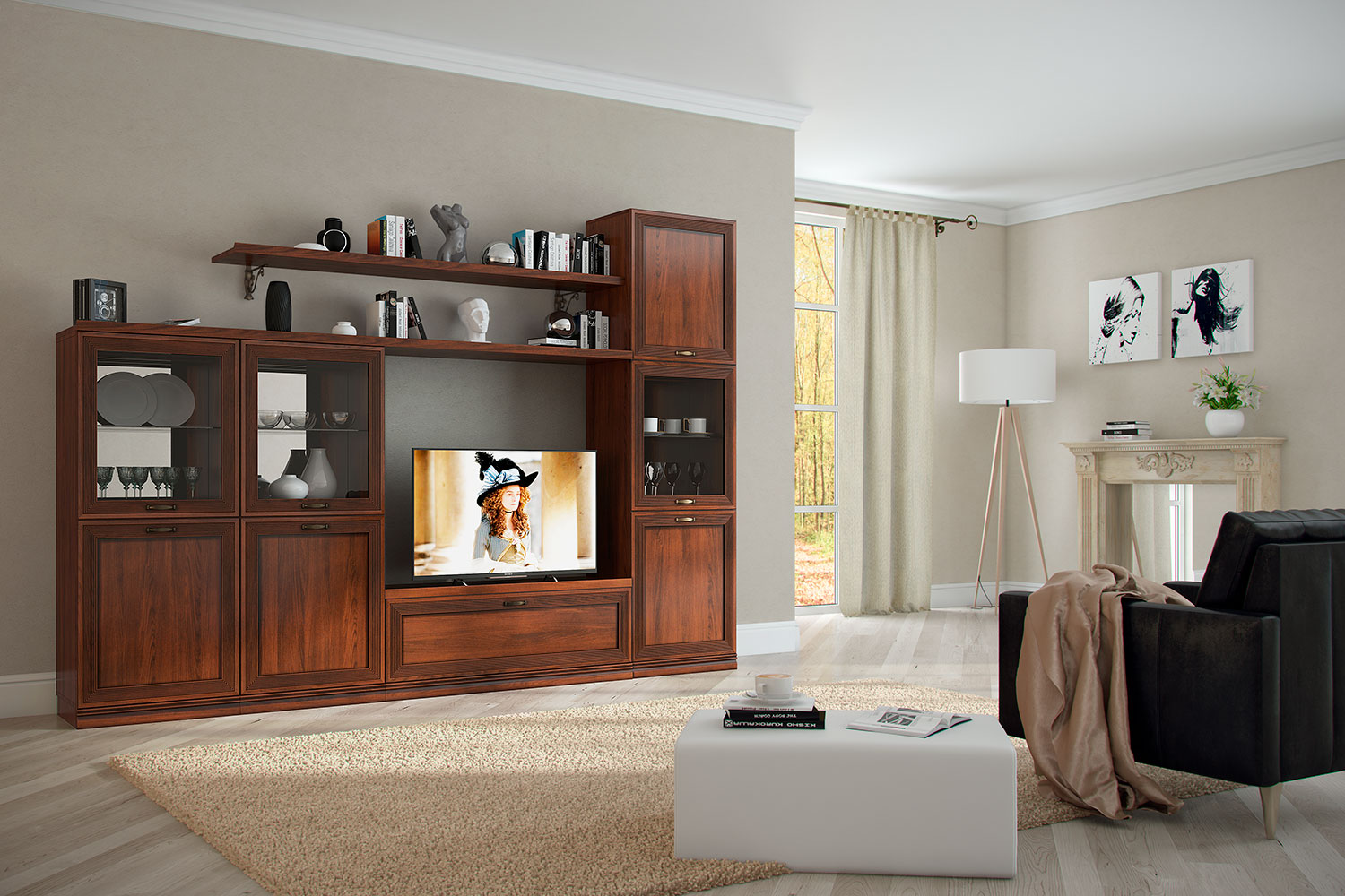 - Гостиная Адажио понравится семейным людям, ценителям классики и традиций. Она создана для уютных вечеров с близкими людьми, размеренному чтению любимых книг и просто приятных кинопросмотров за кружкой чая.