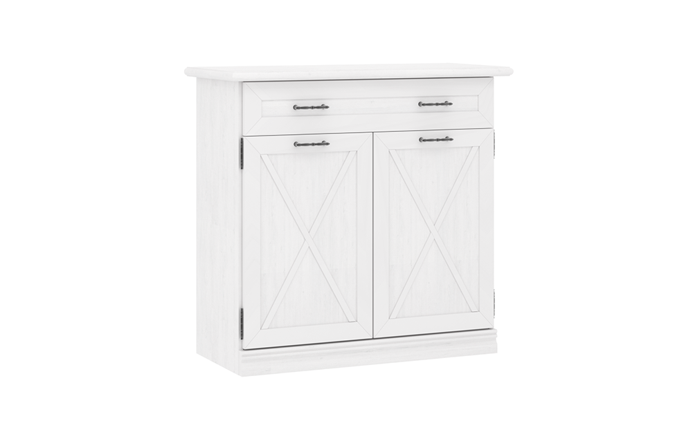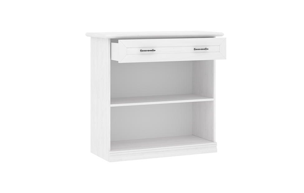За фасадами, украшенными элегантными фахверками, скрывается два вместительных отсека. Выдвижной ящик оснащен встроенным механизмом самозакрывания. Качественная фурнитура обеспечивает вертикальную и горизонтальную стабильность элемента, высокоточные направляющие отвечают за плавный и ровный ход. Устойчивость всей конструкции придают металлические, регулируемые по высоте ножки, скрытые декоративным цоколем. Изделие изготовлено из прочной и долговечной древесной плиты. Покрытие обладает стойкостью к воздействию влаги и высоких температур, отличается простотой в уходе. Все кромки облицованы термопластичным полимером.