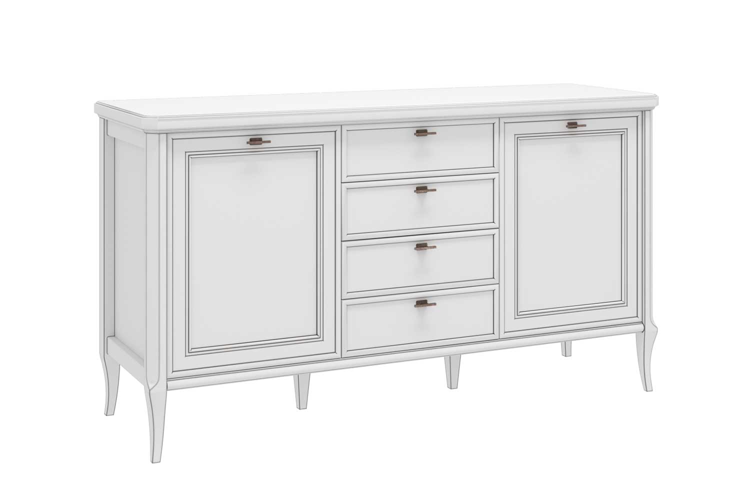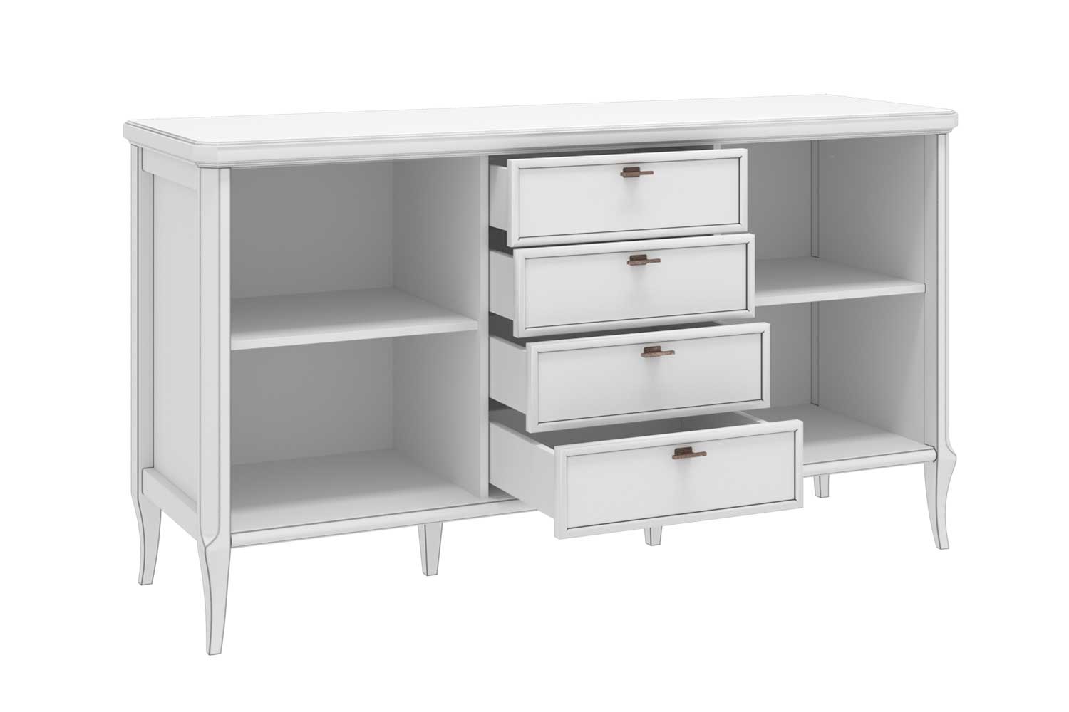 - Крайние секции комода — отделения с одной съемной щитовой полкой за распашными фасадами;