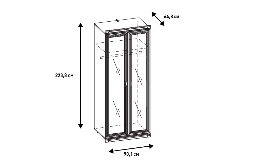 - Шкаф укомплектован полкой и штангой для одежды;