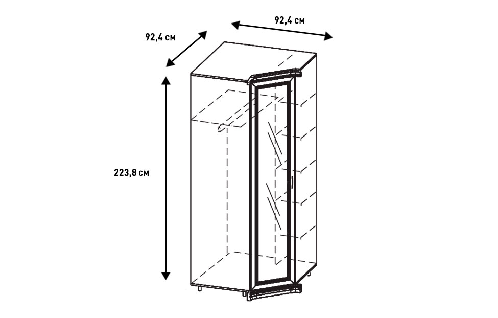 - Высота модуля — 223,8 см с учетом высоты лицевого карниза 6,2 см;