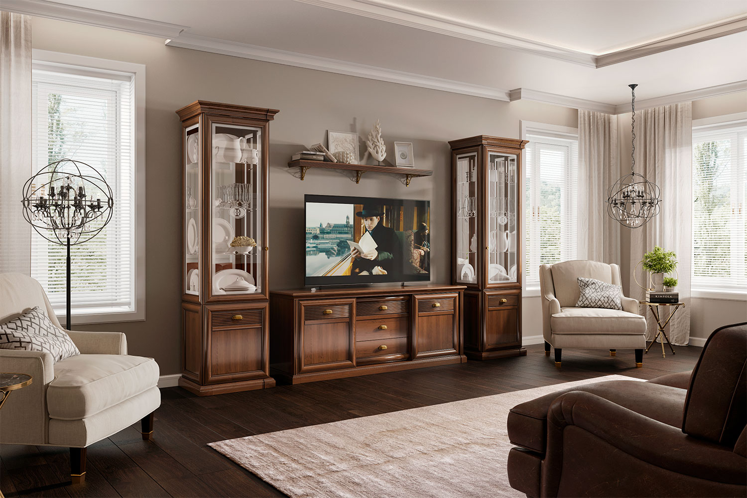 - Гостиная Изотта понравится тем, кто любит и ценит традиции, уютные семейные вечера и хочет подчеркнуть свой вкус и статус. Такая мебель так и просит быть в центре внимания, поэтому домашние приемы будут очень даже кстати (гости оценят!).