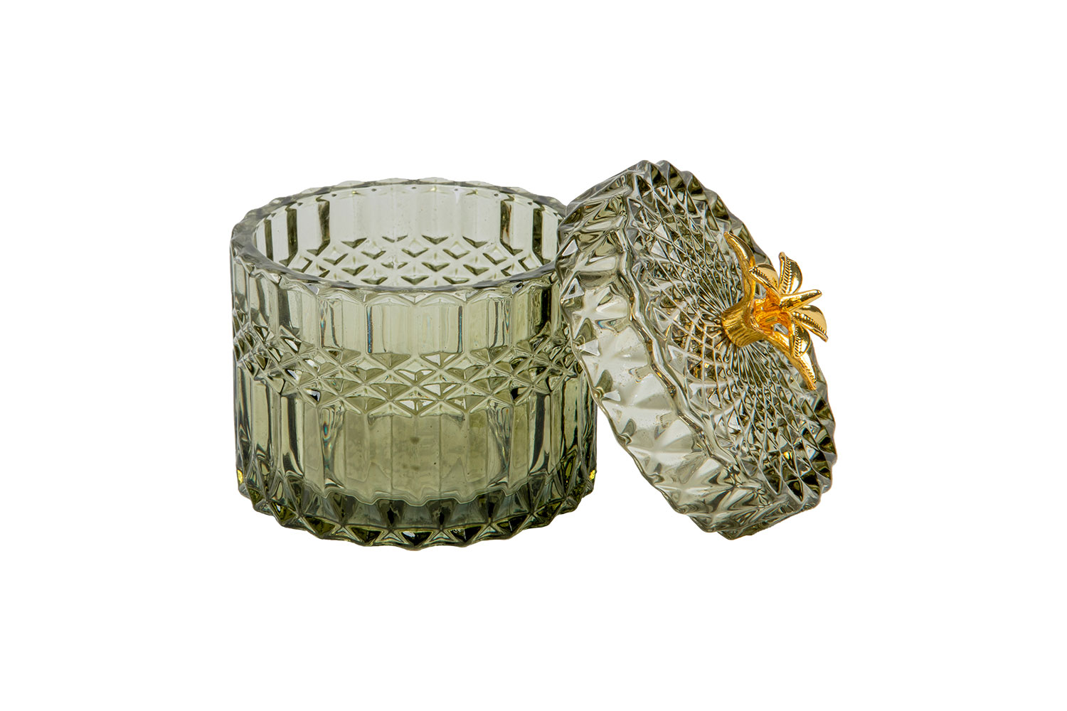Прозрачные шкатулки из цветного стекла — практичный и эстетичный способ навести порядок в мелочах. В шкатулке с крышкой легко хранить украшения и аксессуары для волос, нитки и иголки, важные записки и даже канцелярию. Удобная ручка в виде нескольких золотистых лепестков, трендовые оттенки — зеленый, оливковый, шоколадный; округлая форма и прозрачный орнамент — всё соответствует популярным природным мотивам в интерьере. Шкатулка с переливающимися на солнце или в свете ночника гранями выглядит как настоящая драгоценность и элегантно украсит собой ваш подзеркальный столик.