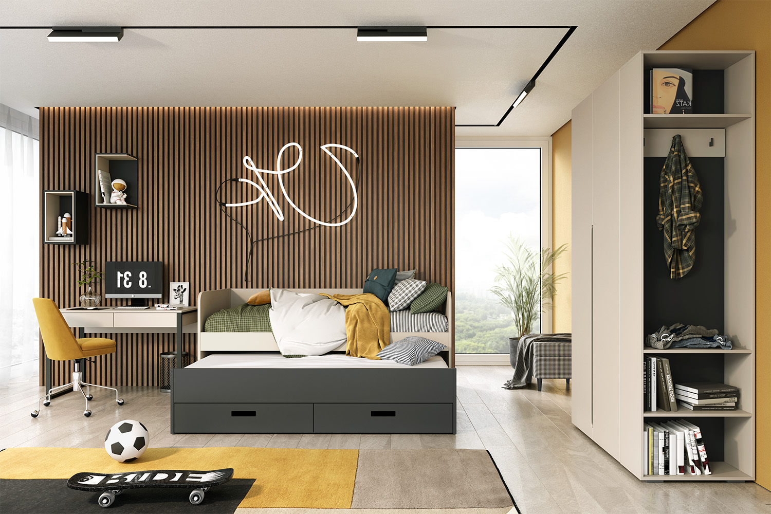 Модули-трансформеры коллекции Интро подходят как для небольших квартир благодаря раздвижным механизмам, так и для просторных жилых пространств благодаря разнообразию модулей, позволяющих удобно и нескучно оформить интерьер.