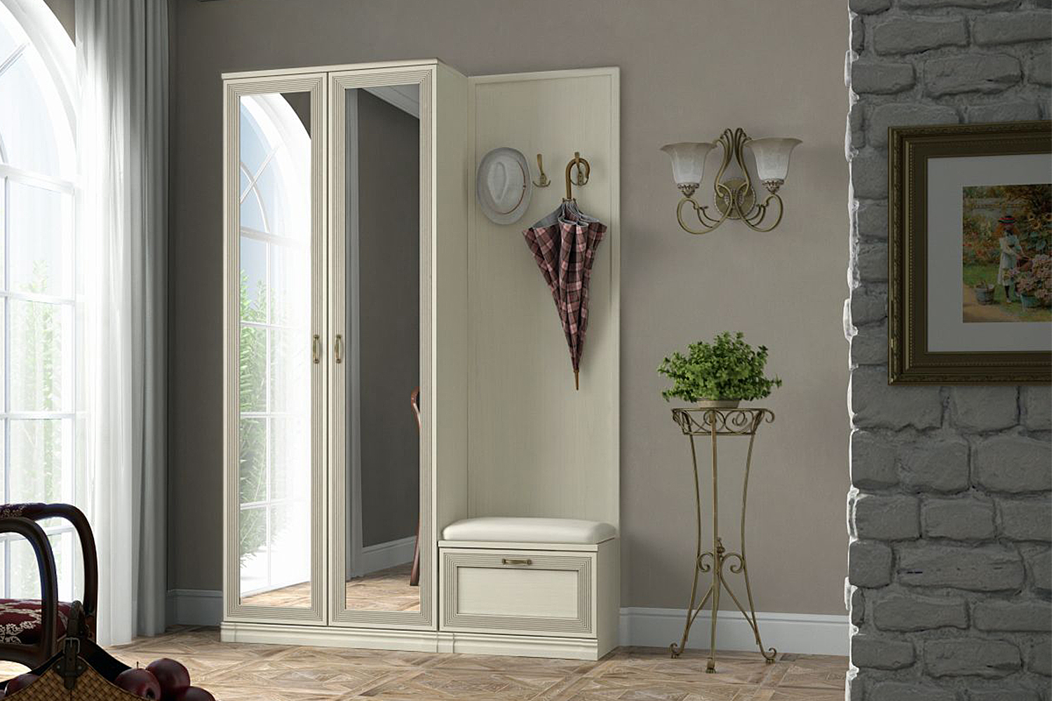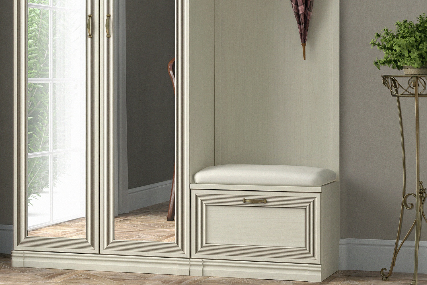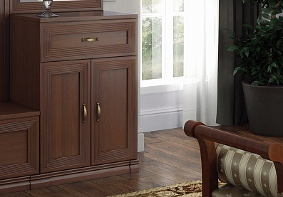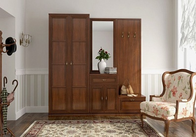 - Адажио — образец сдержанности и изящества, стиля и элегантности. Мебель из коллекции подойдет не только к классическим интерьерам, но и к прихожим в стилях фьюжн, контемпорари и эклектика;