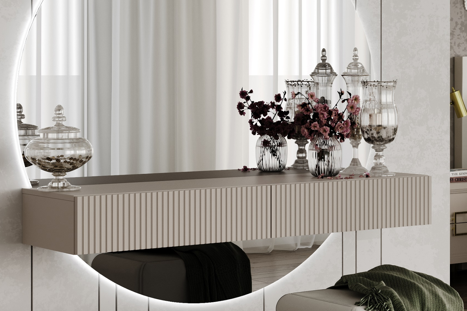 – описание: стиль ар-деко, минимализм, цвет кашемир серый, размер 16x120.1x37.1 см.