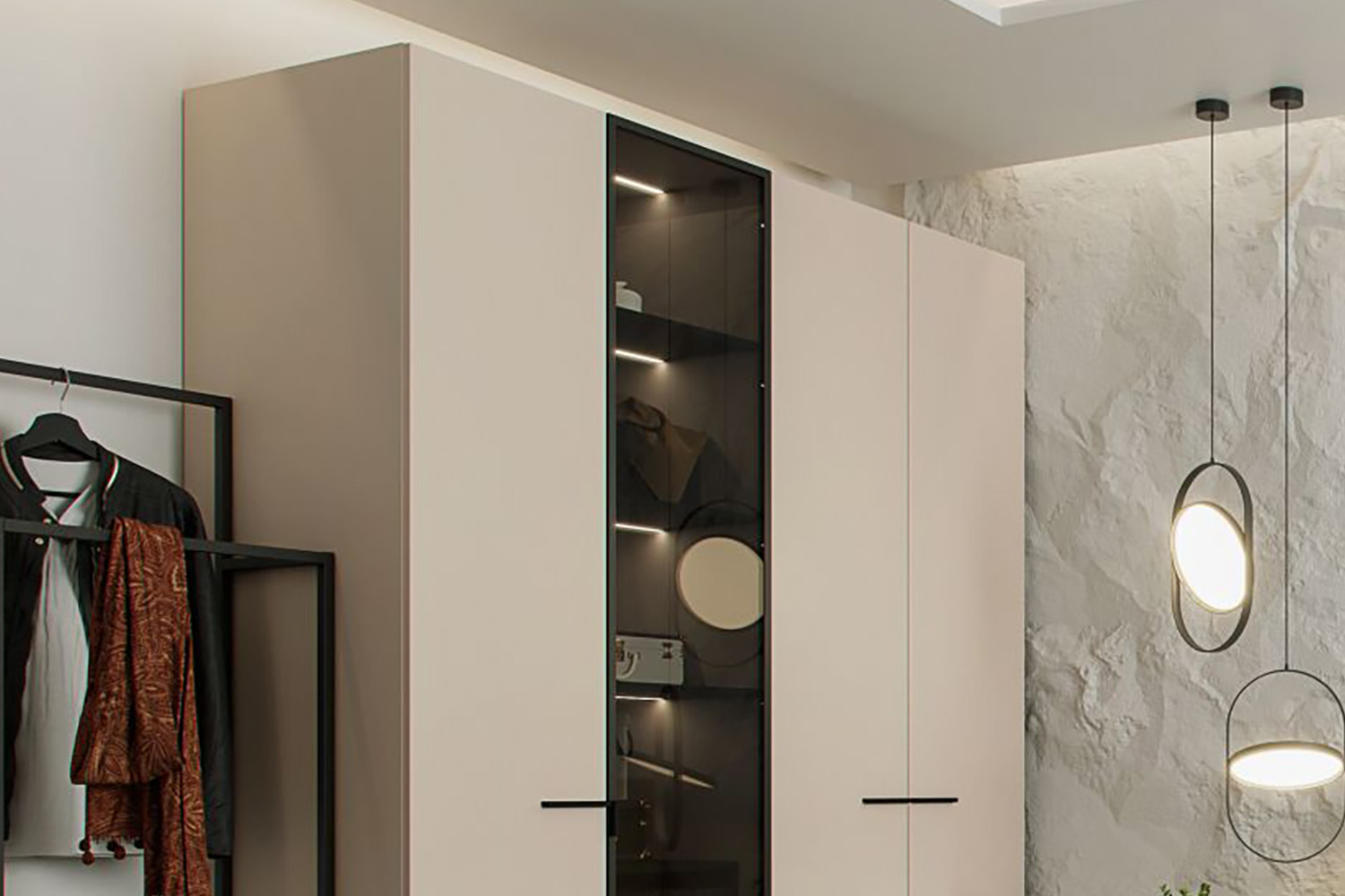 - Фасады шкафов из МДФ 19 мм в пленке ПВХ, или рамочные – профиль алюминиевый, стекло затемненное;