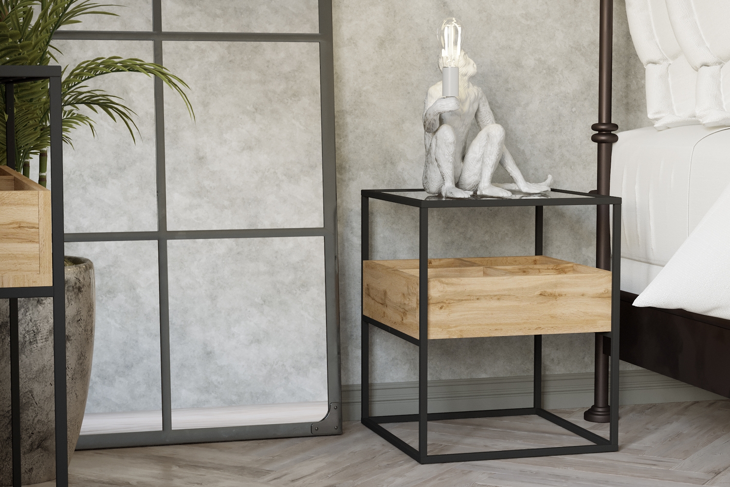 – описание: назначение для спальни, цвет дуб вотан, размер 55.5x45x45 см, стиль лофт.