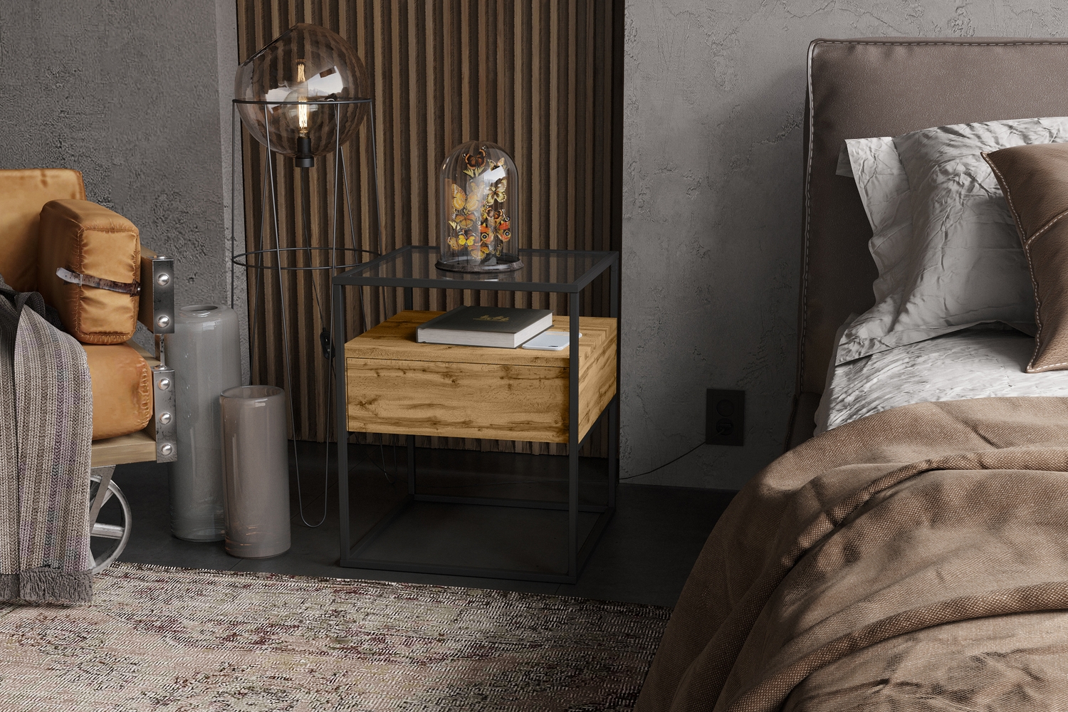 – описание: стиль лофт, назначение для спальни, размер 55.2x45x45 см, цвет дуб вотан.