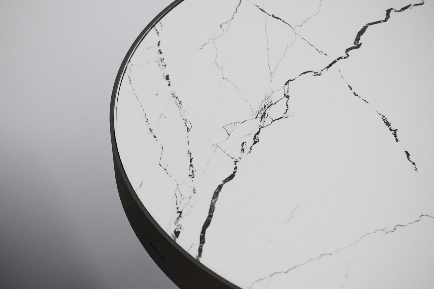 Стол журнальный «Хьюго» — элегантная в своей простоте модель в современном стиле. Основание и столешница соединены двумя опорами. За счет того, что они смещены к краю основания, столик можно установить вплотную с диваном или мягким креслом. Прочная конструкция столика полностью изготовлена из металла в черном цвете. Круглая столешница выполнена в стекле с УФ-печатью под мрамор.
