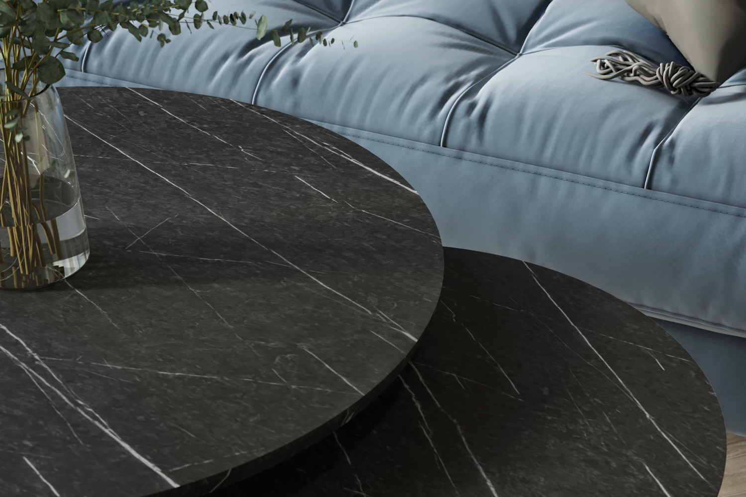 Комплект столов журнальных «Лесло» представляет собой гармоничную и функциональную композицию из двух столиков разной высоты и диаметра, расположенных один над другим. Дизайнерский прием — возможность разместить данную модель любым комфортным способом или использовать каждый из них по отдельности. Комплект журнальных столиков выполнен в стиле лофт, сочетающем оригинальную текстуру декоративного покрытия столешницы и металлического подстолья. Благодаря своей строгой элегантности и универсальности журнальные столики легко комбинируются с мебелью в современном стиле.