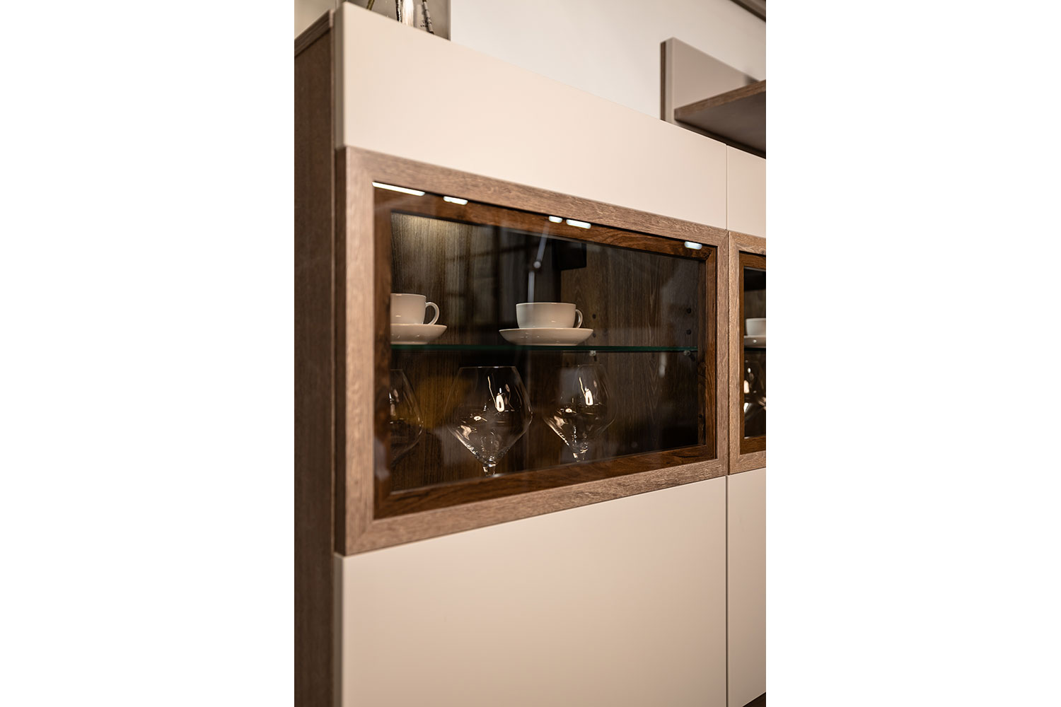 - Фасад: профиль МДФ в пленке ПВХ, вставка — стекло Stopsol бронза;