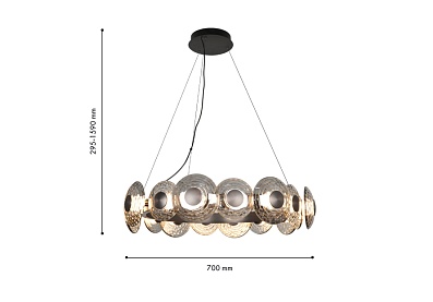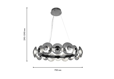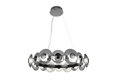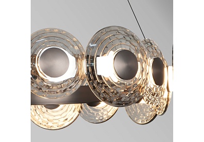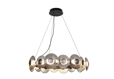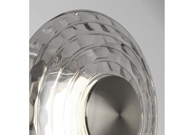 В основе дизайна светильников Claros лежат стеклянные закругленные фактурные плафоны, напоминающие изящные тарелки, между которыми встроены модули LED, создающие мягкое и комфортное освещение. Коллекция включает в себя одиночные подвесы, люстры, а также два вида настенных светильников, что позволяет создавать комплексное освещение пространства в едином стиле. Люстры можно легко комбинировать в оригинальные световые композиции, используя универсальные крепления, что дает простор для творческих решений и индивидуального подхода к оформлению интерьера. Металлический каркас цвета матового никеля, закругленный фактурный плафон из прозрачного стекла, LED-модуль.
