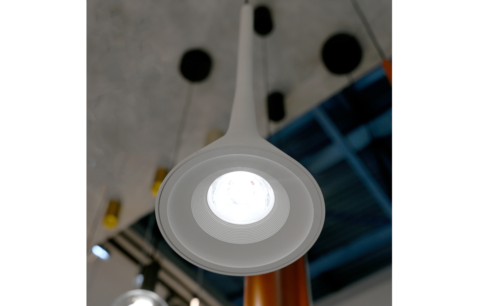 Коллекция Klokken представлена подвесами в форме удлиненной трубочки с конусом на конце, такой плафон позволяет потоку света от встроенного LED-модуля рассеиваться под широким углом обеспечивая качественное освещение рабочей поверхности. Подвесы изготовлены из анодированного алюминия, что делает их поверхность более устойчивой к коррозии. Металлический каркас черного цвета, плафон из алюминия в форме тонкого удлиненного цилиндра с конусом на конце в белом цвете, в нижней части подвеса расположен светодиодный источник света, регулируемая высота.