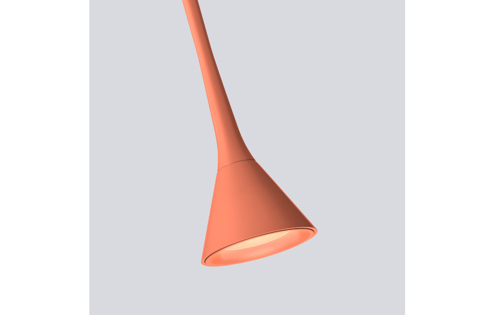 Коллекция Klokken представлена подвесами в форме удлиненной трубочки с конусом на конце, такой плафон позволяет потоку света от встроенного LED-модуля рассеиваться под широким углом обеспечивая качественное освещение рабочей поверхности. Подвесы изготовлены из анодированного алюминия, что делает их поверхность более устойчивой к коррозии. Металлический каркас черного цвета, плафон из алюминия в форме тонкого удлиненного цилиндра с конусом на конце в кирпичном цвете, в нижней части подвеса расположен светодиодный источник света, регулируемая высота.